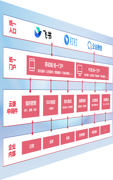 对协作平台提供支持服务,,,支持企业应用与协作平台对接,,包含组织同步、、、、消息集成、、、待办集成等。。支持目前主流的协作平台:钉钉、、企微和飞书。。。